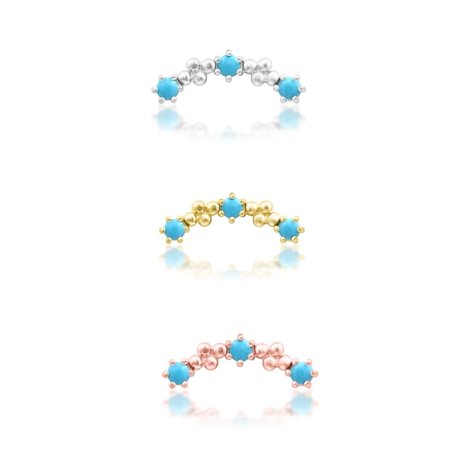 Harlow is a dainty cluster piece featuring 3 synthetic turquoise stones with beaded accents.